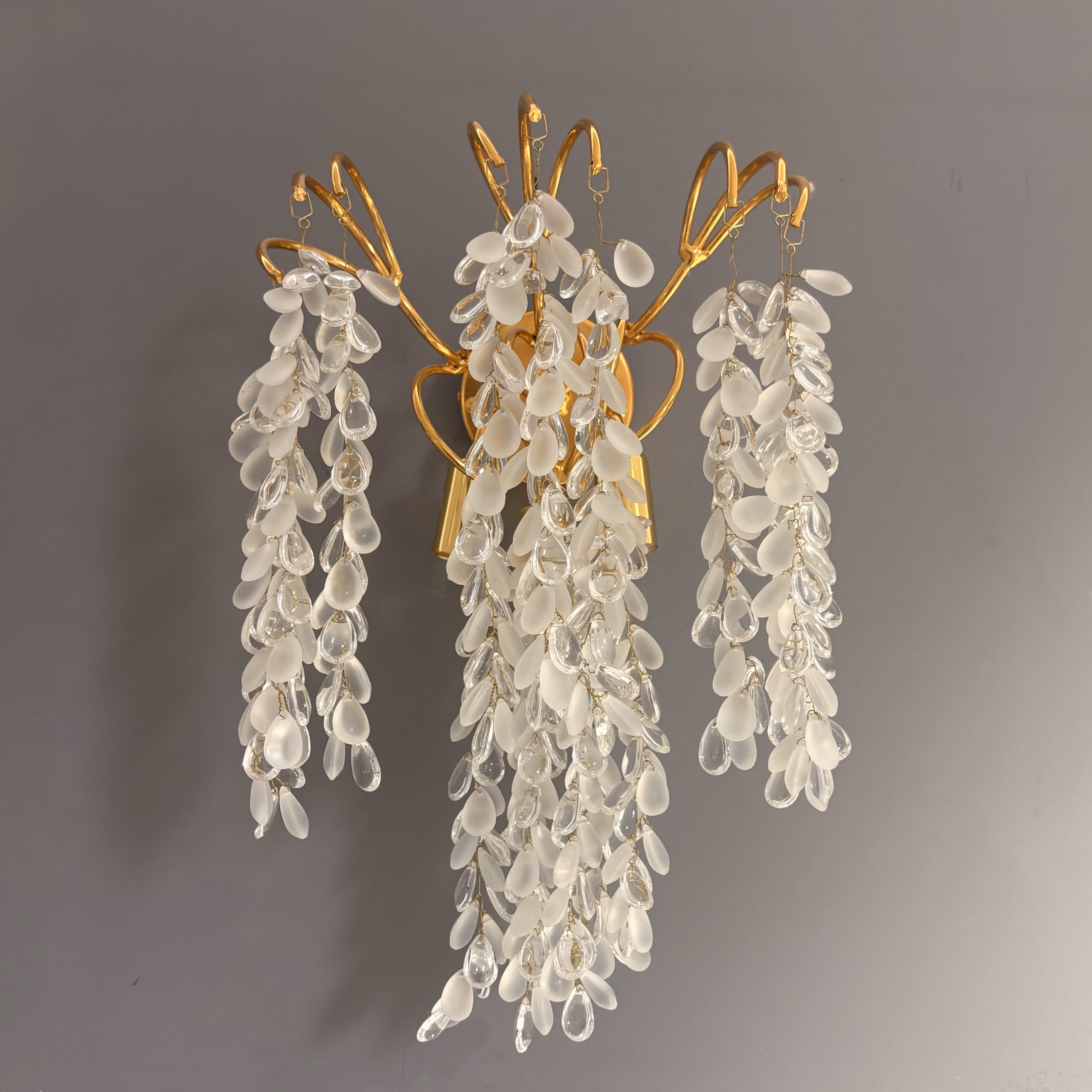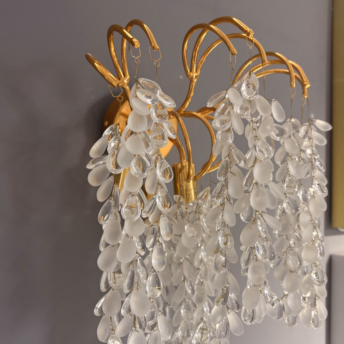 Aplica Crystal Rain aduce un efect vizual spectaculos în orice încăpere, datorită ghirlandelor sale delicate de cristale clare și mate, dispuse în cascadă. Ideală pentru living, hol sau dormitor, această piesă creează o lumină caldă și rafinată.