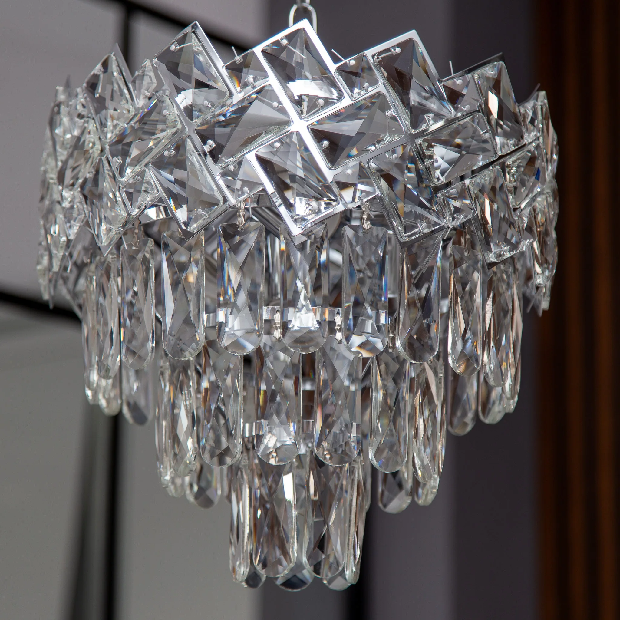 Pentru a pune în valoare reflexiile reci și curate ale cromului, recomandăm becuri LED cu lumină neutră (4000K). Aceasta va face ca fiecare cristal K9 să strălucească precum gheața sub soare, oferind camerei o claritate modernă.