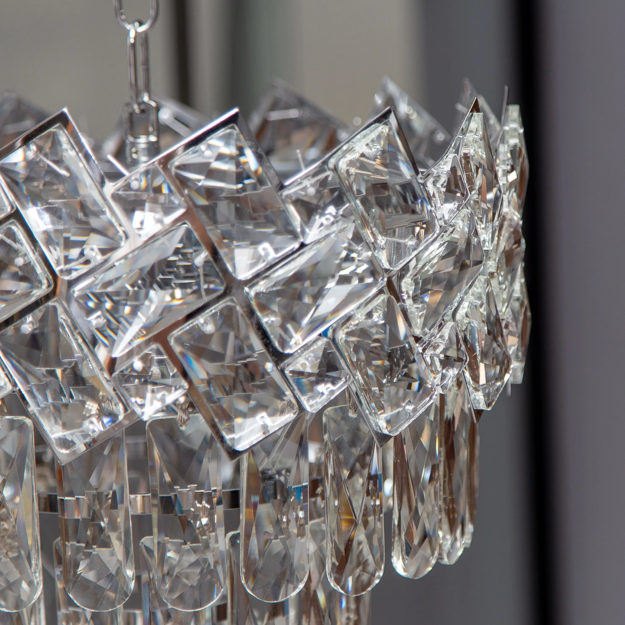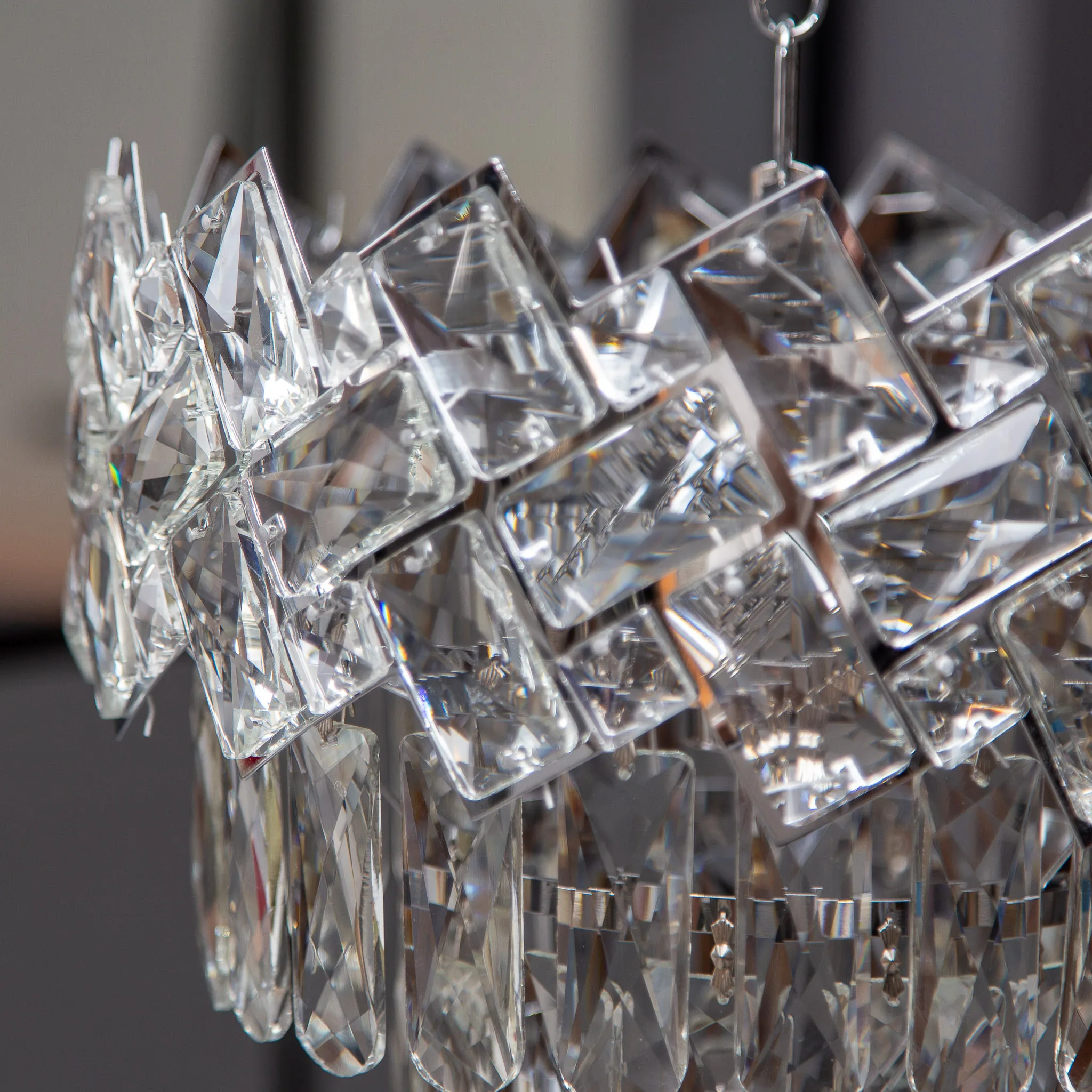 Soluția: O „cascadă” de gheață și lumină. Candelabrul Crystal Ice Cascade din seria 8650 CH nu este doar un simplu obiect decorativ; este o experiență senzorială. Realizat din Cristal K9 de înaltă puritate și oțel cromat cu finisaj oglindă, acest model creează un spectacol de reflexii ce amintește de strălucirea gheții sub razele soarelui.