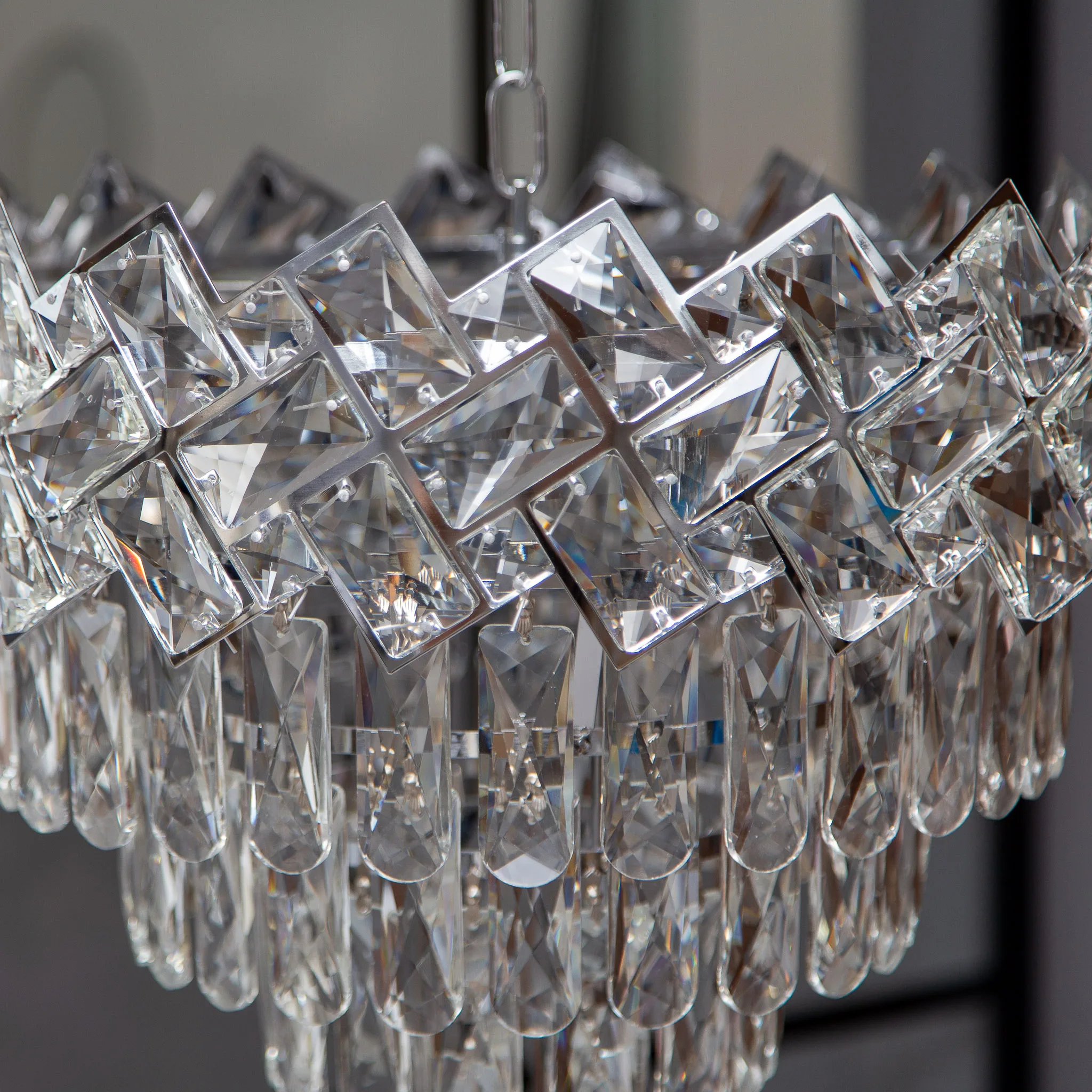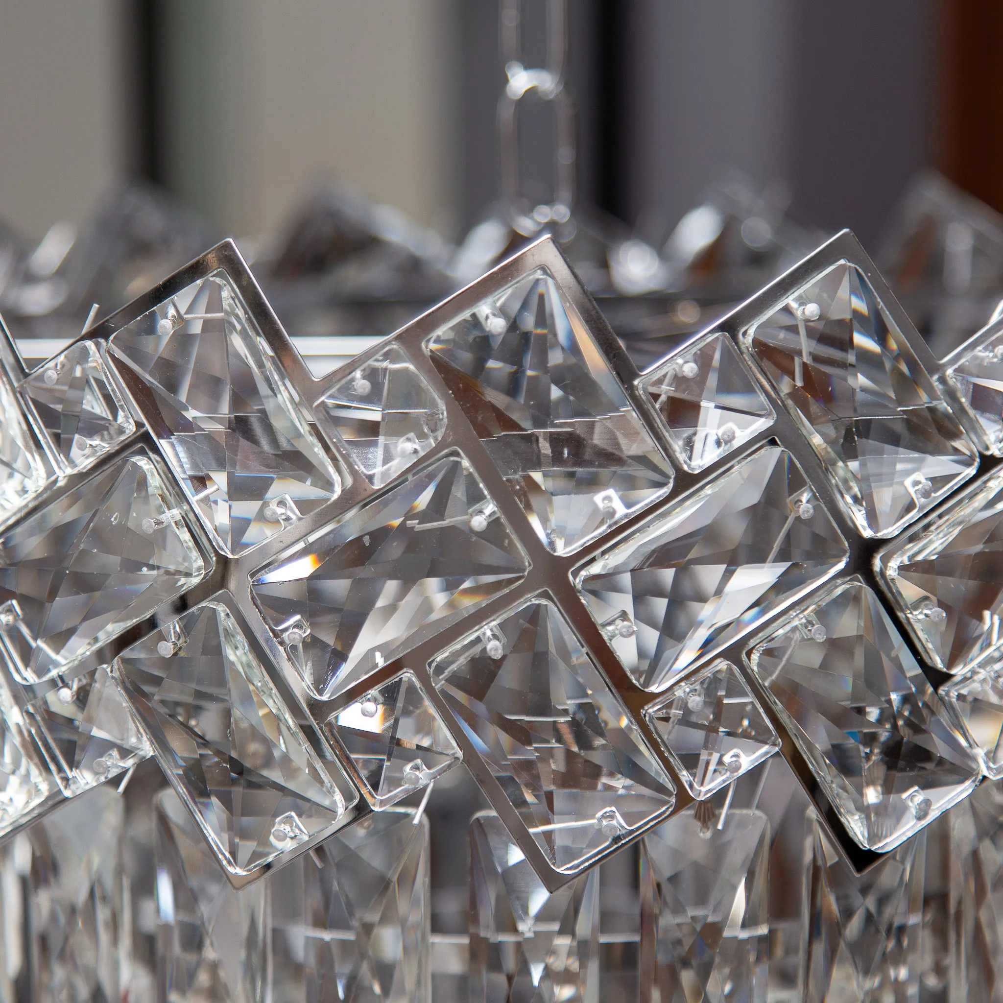 Soluția: O „cascadă” de gheață și lumină. Candelabrul Crystal Ice Cascade din seria 8650 CH nu este doar un simplu obiect decorativ; este o experiență senzorială. Realizat din Cristal K9 de înaltă puritate și oțel cromat cu finisaj oglindă, acest model creează un spectacol de reflexii ce amintește de strălucirea gheții sub razele soarelui.