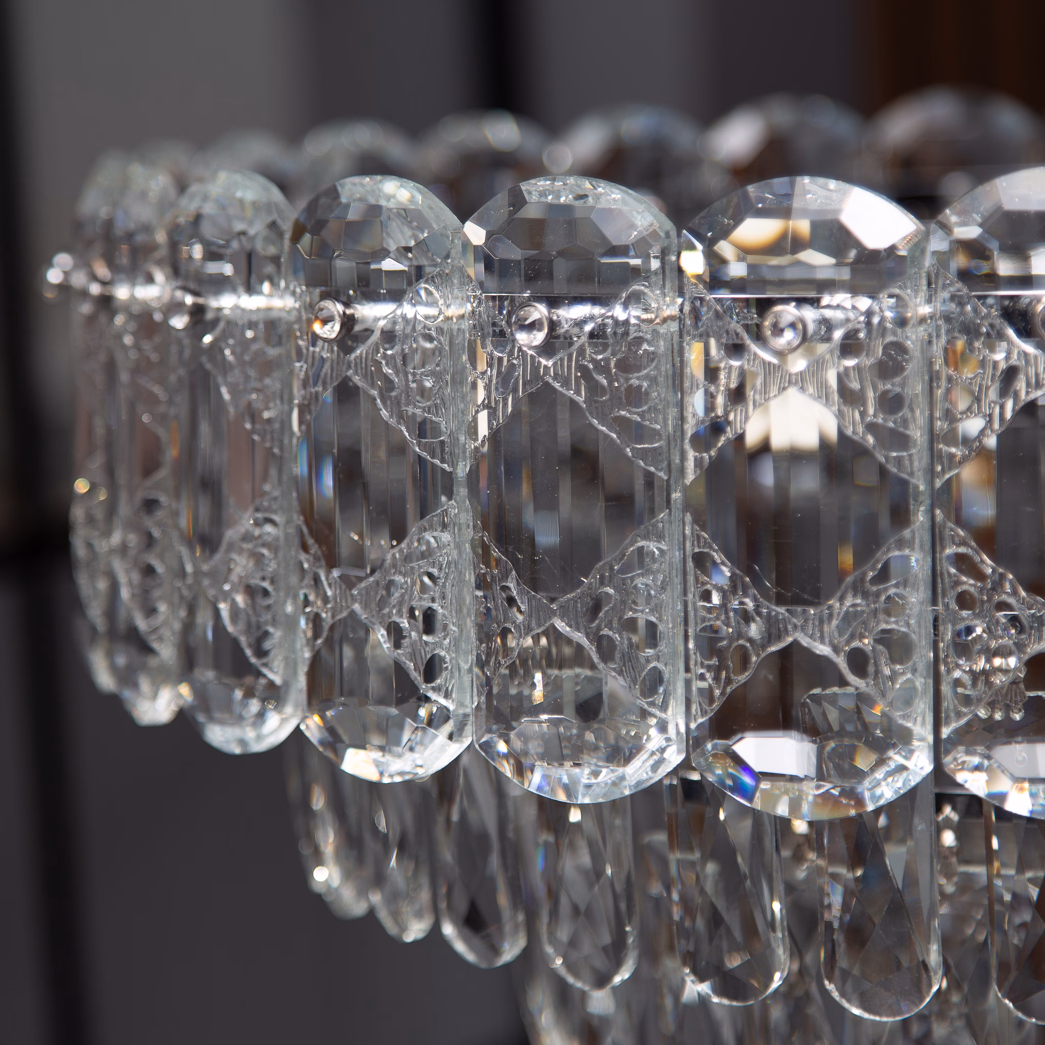 Materiale de Lux Cristal K9 & Sticlă Argintie Frost Materiale premium pentru o estetică de lux și durabilitate.