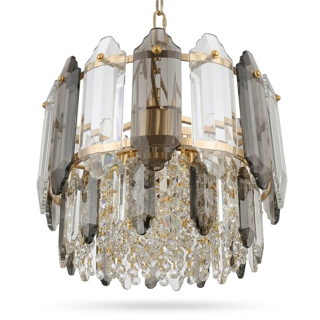 Candelabru Elegant Gold Smoke 30 cm – Cristal K9 Premium Fumuriu și Transparent, 3 Becuri E14, Design Modern de Lux pentru Holuri, Dormitoare și Zone de Accent