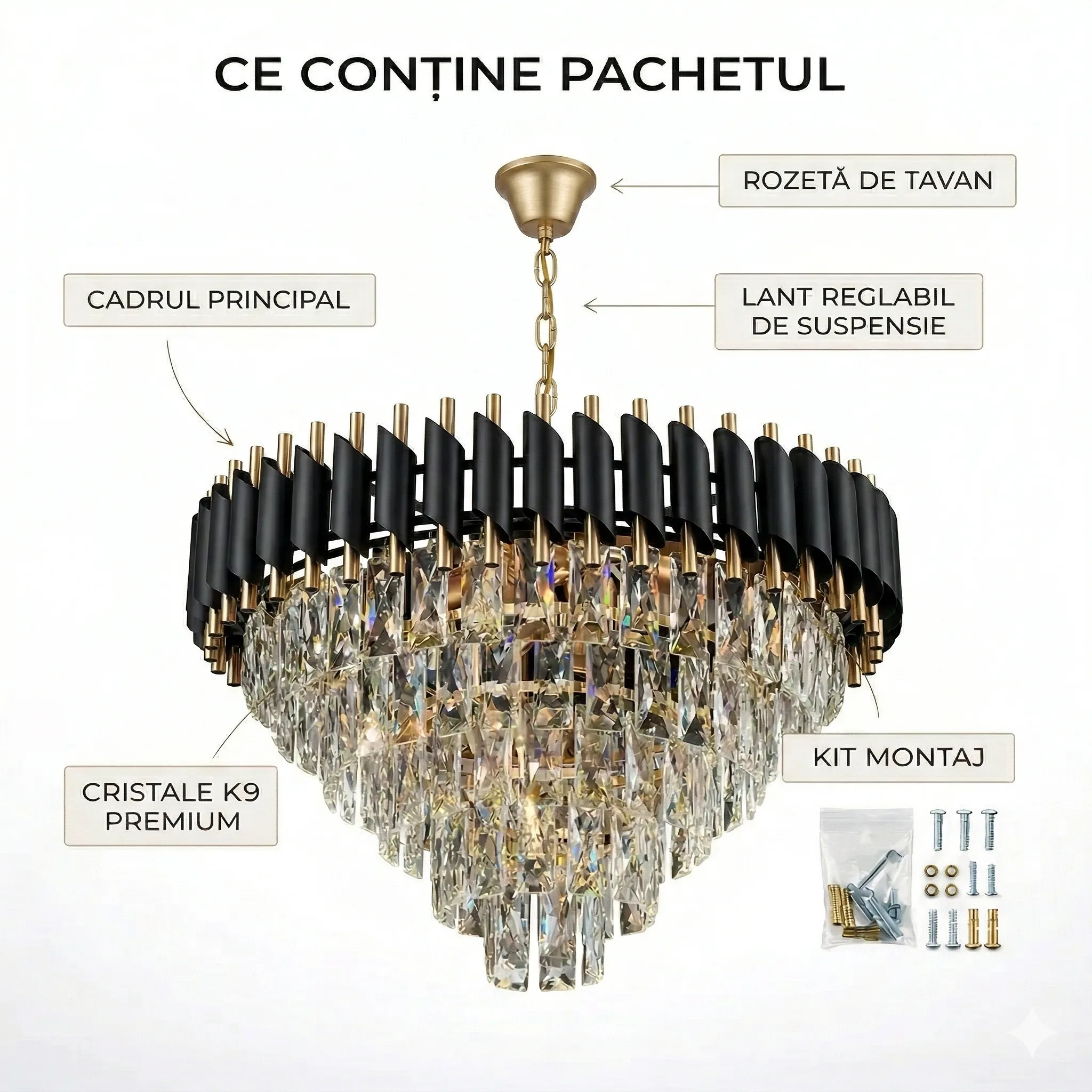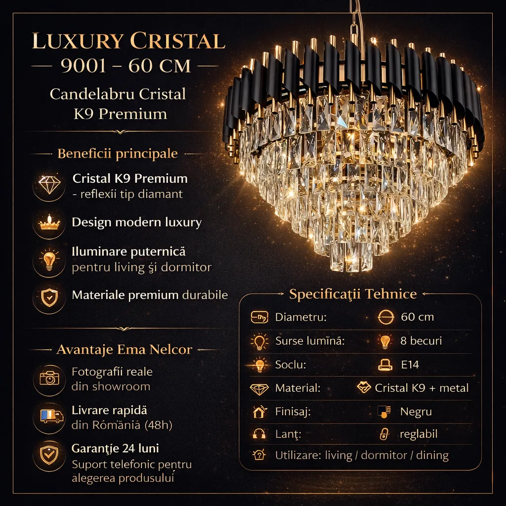 • Cristale K9 Premium – efect luxury, reflexii puternice ale luminii