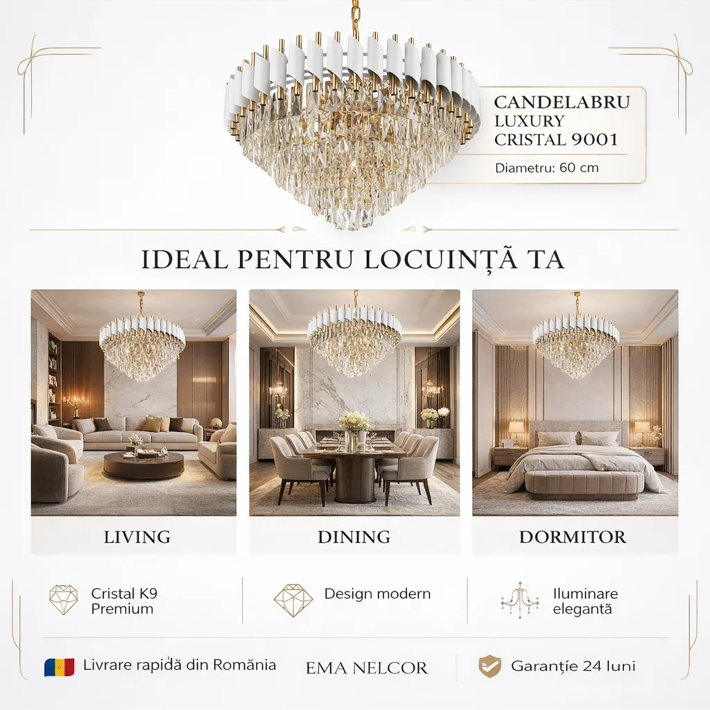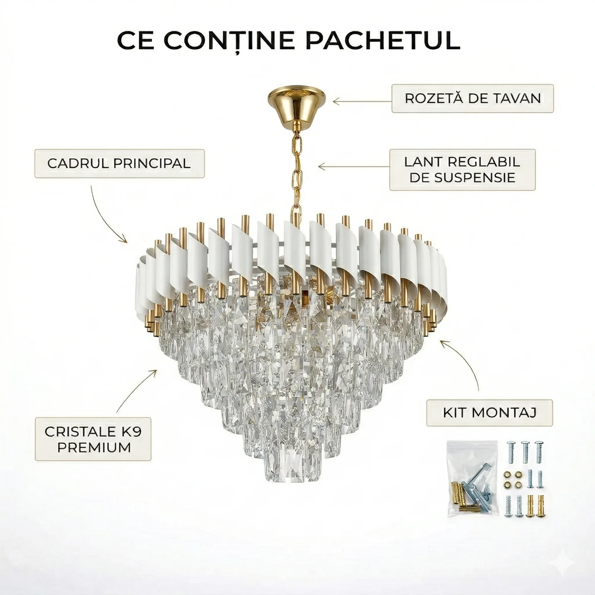 • Cristale K9 Premium – efect luxury, reflexii puternice ale luminii.