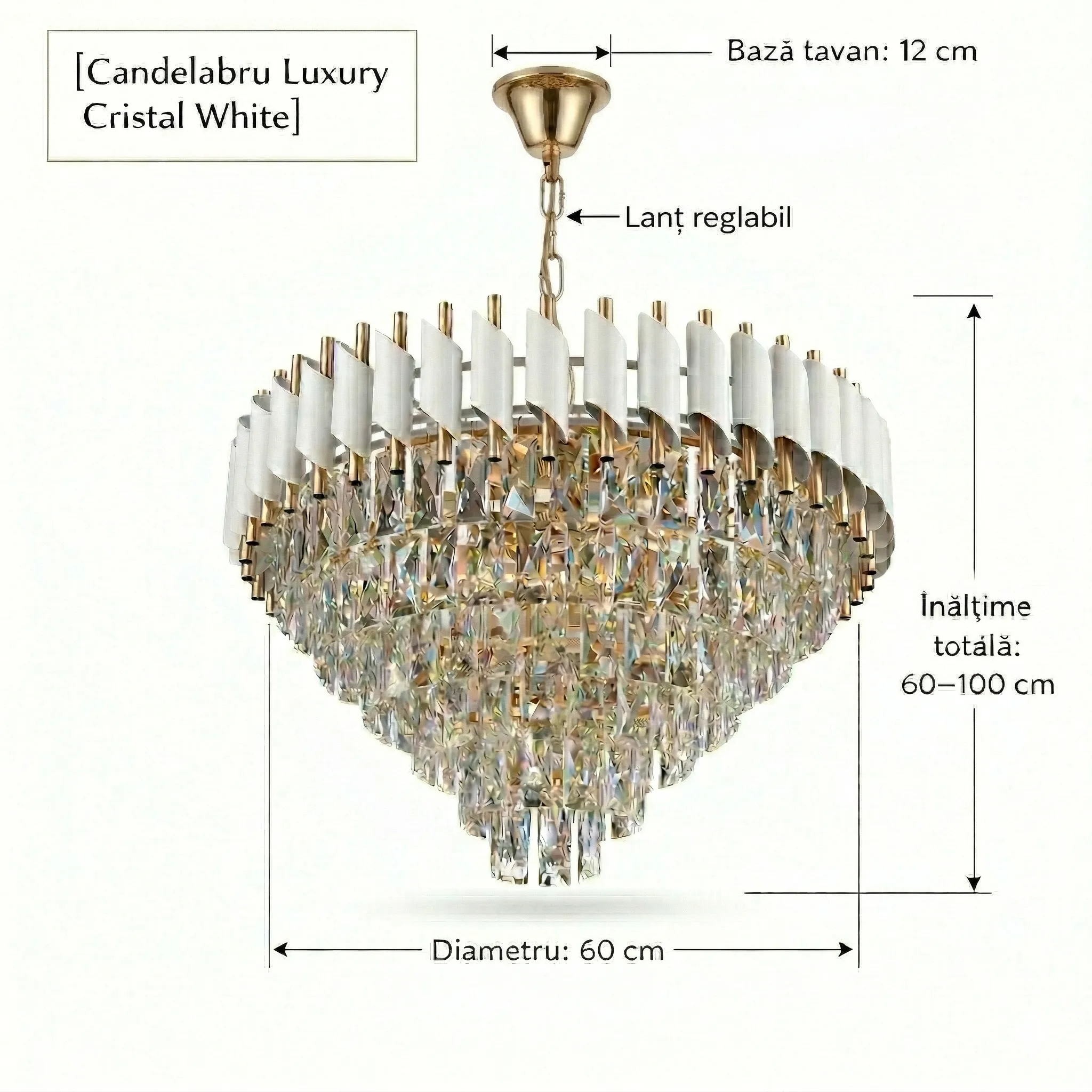 Candelabru Luxury Cristal White 60 cm – Cristal K9 Premium și Metal Alb, 8 Surse E14, Design Modern pentru Living-uri Spațioase, Lobby și Hotel