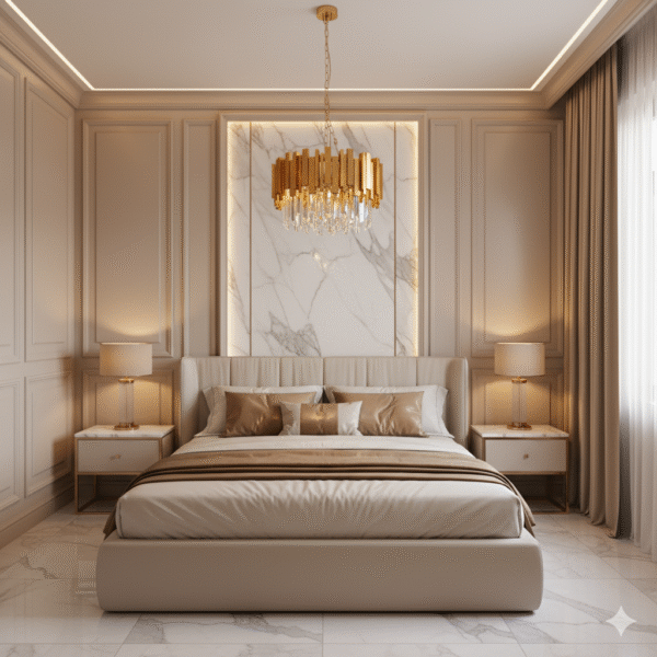 Contrast de Lux: Albul pur în combinație cu structura interioară aurie emană o stare de calm și opulență discretă.