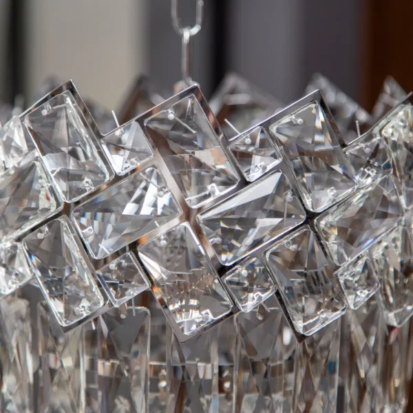 3. Cristalele sunt din sticlă sau plastic? Toate lustrele Ema Nelcor folosesc exclusiv Cristal K9 Premium, un tip de sticlă cu conținut ridicat de plumb care oferă reflexii clare, spre deosebire de variantele ieftine din acril sau plastic.