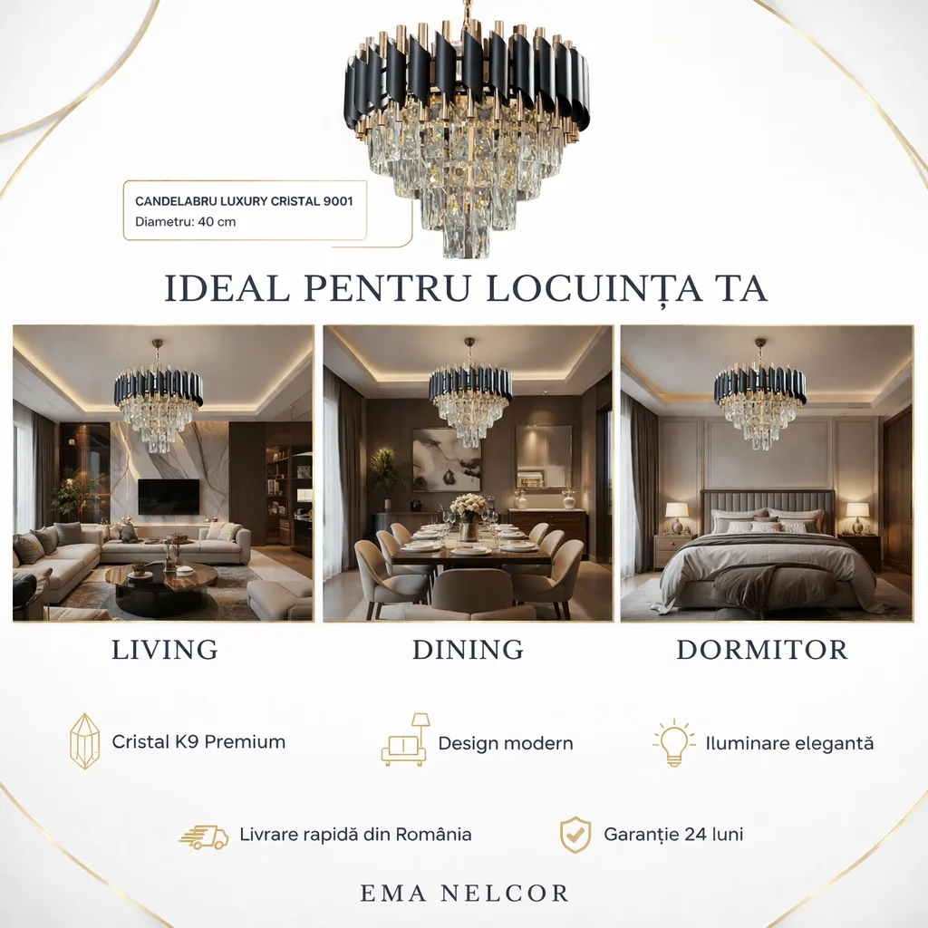 • Cristale K9 Premium – efect luxury, reflexii puternice ale luminii