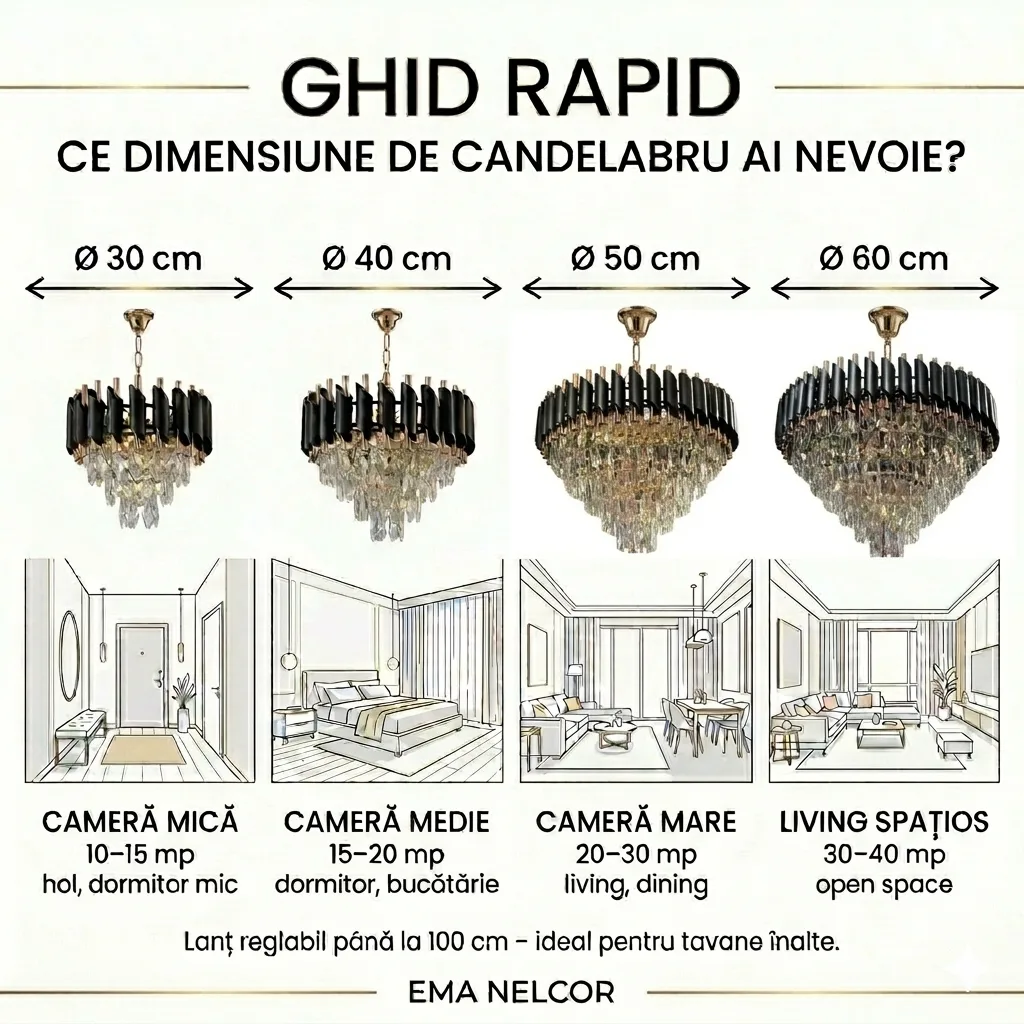 Ema Nelcor recomandă ferm ca instalarea și legarea lustrei la curent să fie efectuată exclusiv de către un electrician autorizat. O instalare profesională garantează siguranța casei tale și funcționarea optimă a produsului.