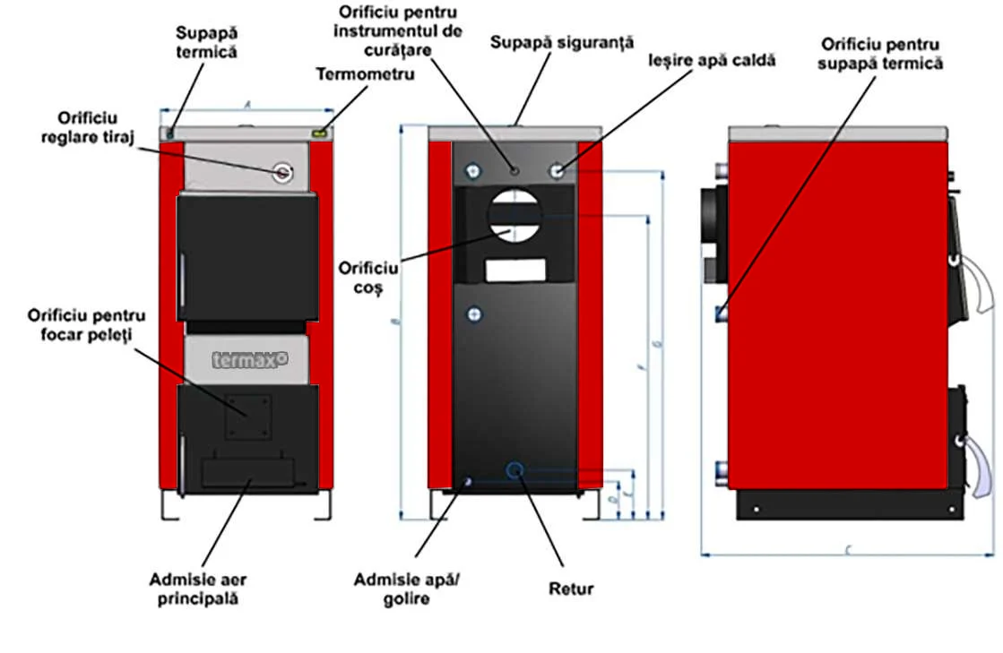 Tabel Specificații Tehnice Cazan pe Lemne/Cărbune Termax 25 kW
