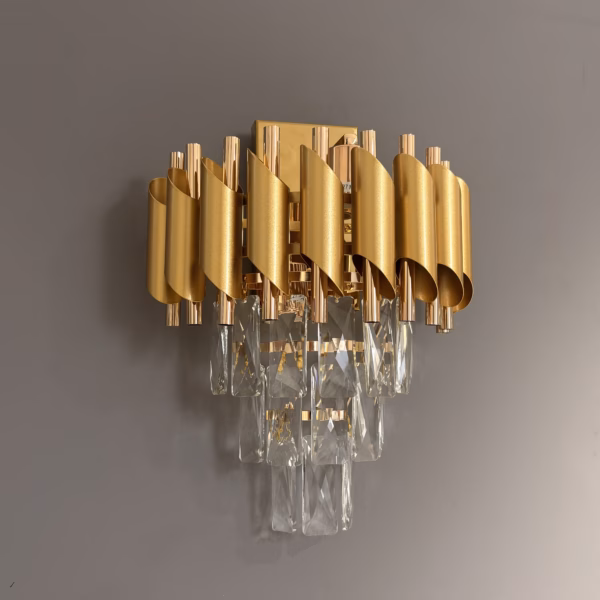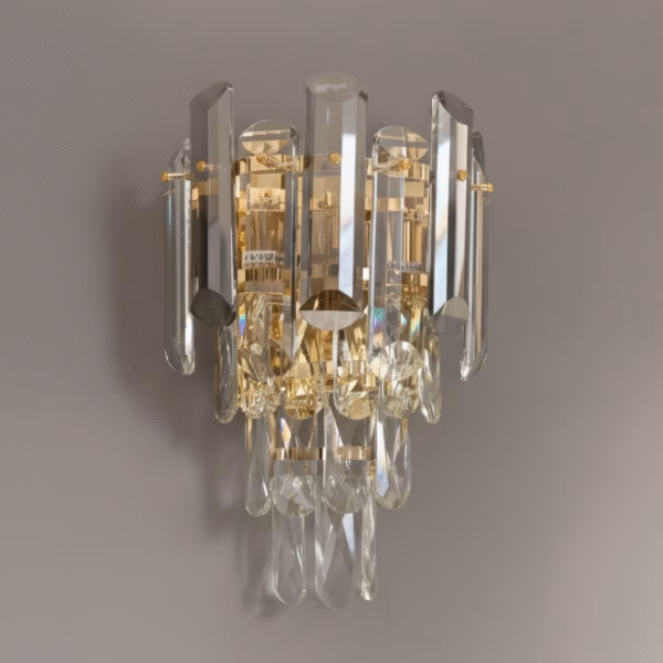 Aplica Crystal Rain este o adevărată piesă decorativă, gândită să transforme orice spațiu într-un loc elegant și primitor. Designul său unic, format din șiruri de cristale transparente și satinate în formă de picături, creează o cădere spectaculoasă de lumină, asemenea unei ploi fine de cristal. Structura metalică aurie adaugă un plus de lux și căldură vizuală, făcând din această aplică o alegere perfectă pentru interioarele moderne, glam sau clasice.