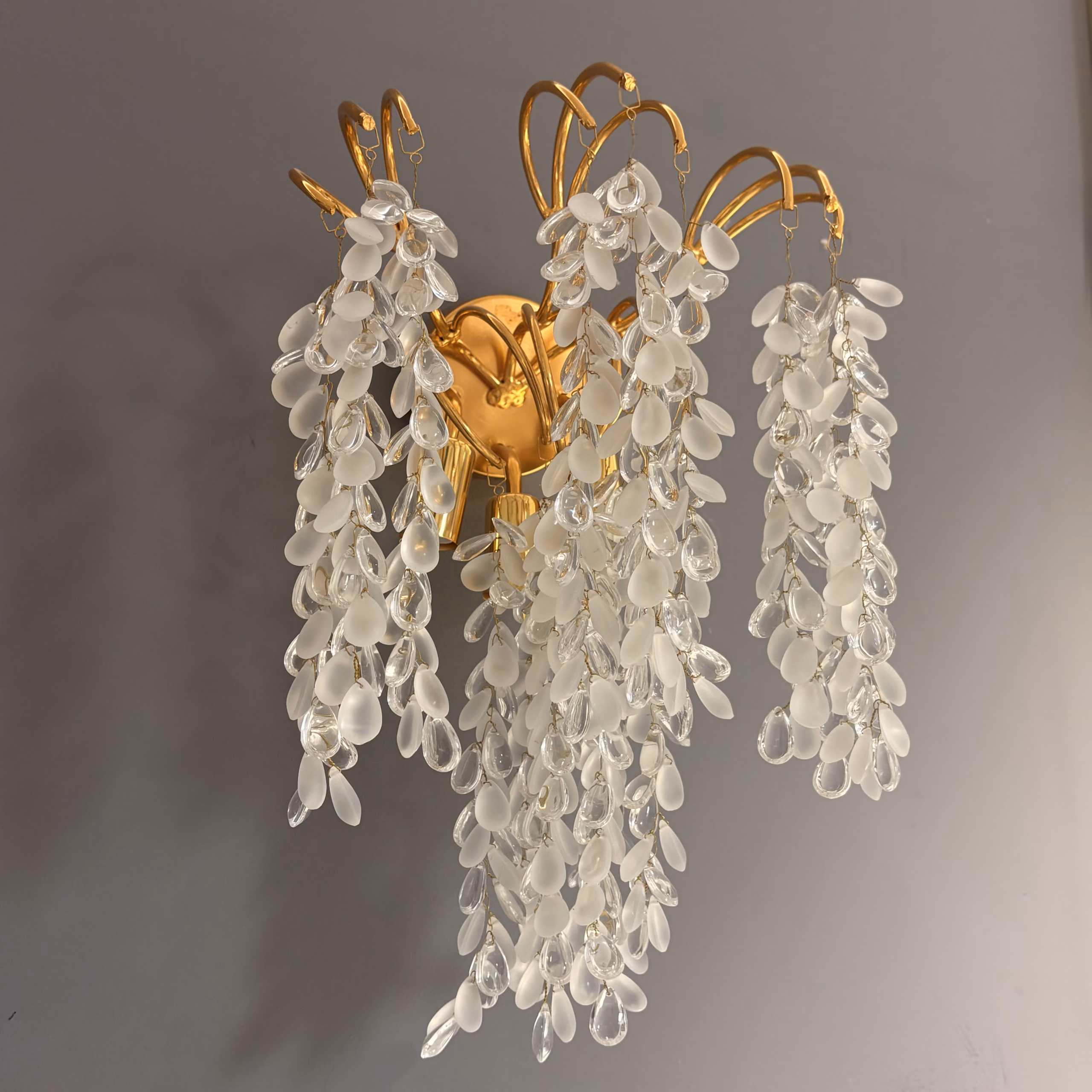 Aplica Crystal Rain aduce un efect vizual spectaculos în orice încăpere, datorită ghirlandelor sale delicate de cristale clare și mate, dispuse în cascadă. Ideală pentru living, hol sau dormitor, această piesă creează o lumină caldă și rafinată.
