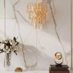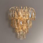 Aplica Glacier Light Gold aduce în interior eleganța luminii calde și strălucirea cristalelor aurii. Fiecare element din cristal este sculptat cu precizie, creând reflexii spectaculoase care amintesc de o cascadă luminată de apus.