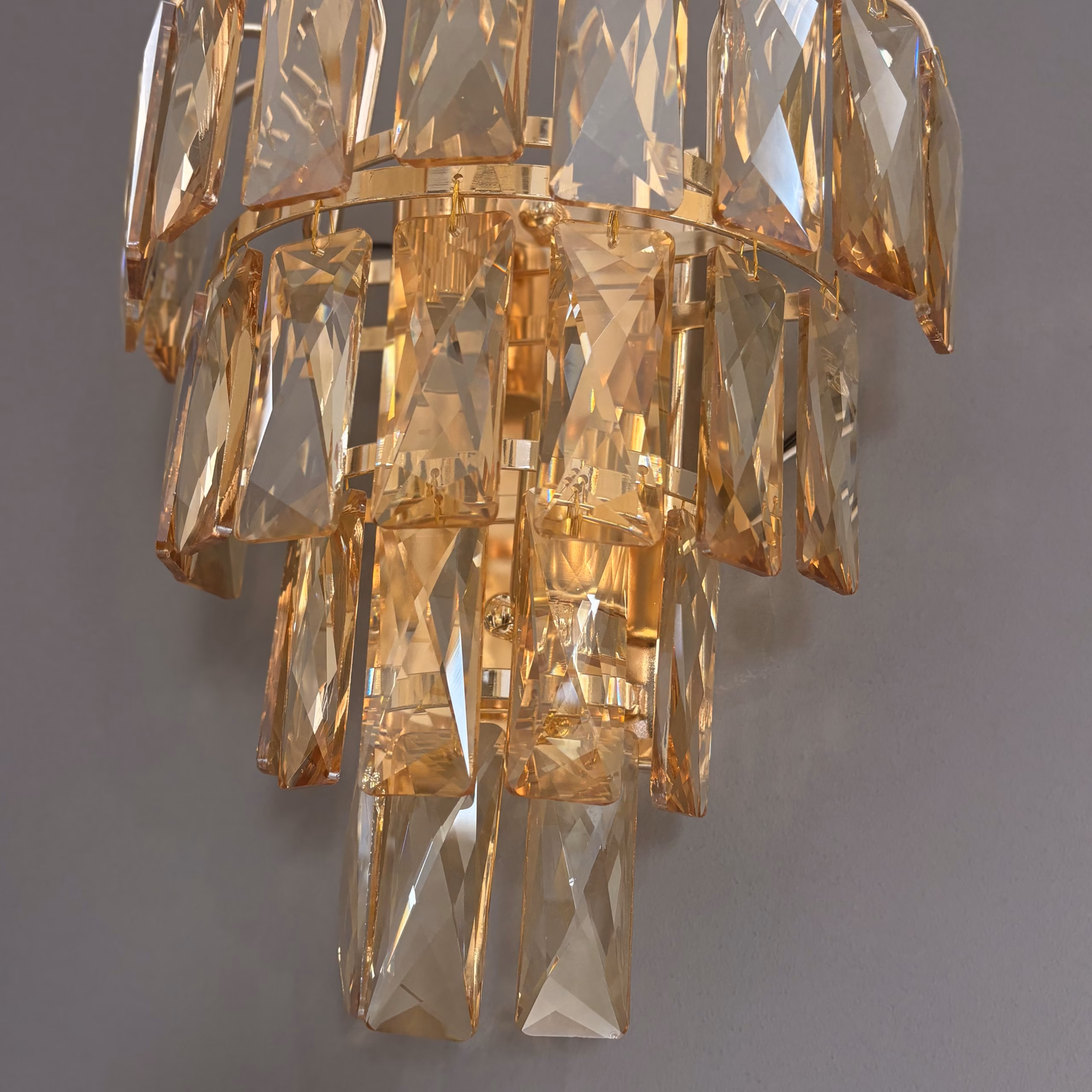 Designul în trepte al cristalelor oferă volum și profunzime, iar atunci când este aprinsă, aplica devine un adevărat centru de interes vizual. Perfectă pentru holuri, dormitoare, livinguri sau spații comerciale elegante, Glacier Light Gold transformă orice perete într-o piesă de design.